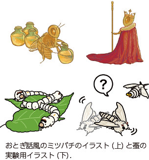 私を例にすると,研究に使用しているモチーフの一つに昆虫がある(右のイラスト).私にとって昆虫の存在は,自分の見てないところで増殖している可能性や口に入るかもしれないという,ただ漠然としたなんとなく,こわいという恐怖感がある.有名な過去の作家の例をあげると,ファーブル昆虫記がある.ファーブルの用いた表現では,狩りをする虫を「頭脳派の殺し屋」「新鮮な肉を好む鬼」自然現象である捕食行為にも「殺戮」などといったとても主観的な視点を含んでいる数々の擬人的な隠喩は,恐怖や嫌悪感,ユーモアや同情,そして興味をかきたてる驚きや魅了に至るまで広い領域で筆を走らせる作風が魅力である.夏場冷蔵庫に入れ忘れて3日経ったシチューの鍋を開けたくなるような,魅惑と嫌悪の二律背反する視点に心惹かれる.