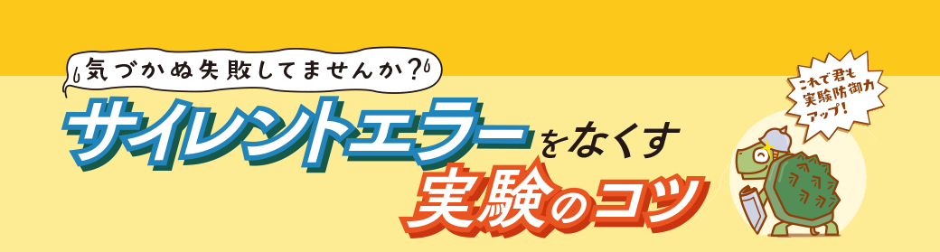 サイレントエラーとは,“本人の知らぬ間” に生じた単純な操作ミス・失敗を指す造語です.本連載では,実験上のサイレントエラーを防ぐためのコツや所作を紹介します.実験を行う際の「癖」として身につけ,無意識的に実験の失敗を減らし,プロフェッショナルな研究者をめざしましょう!