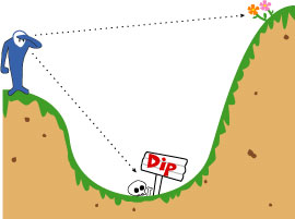 セス・ゴーディンの「the dip(本誌文献1より)」によれば,両親や教師が子どもに与えるアドバイスが成人期になっても効力をもつなら,ビジネスキャリアの観点からみて最も不適切なものの1つが「一度はじめたことは絶対にやめてはならない(Never quit).必ず最後までやり通しなさい」である.ビジネスキャリアの観点から正しくいい直せば「長期的に見て大きな可能性のある仕事やプロジェクト(Dipの向こうに急峻な登り坂のあるキャリアやプロジェクト)であるなら,短期的な苦痛に耐えかねてやめてはいけない」となるだろう.