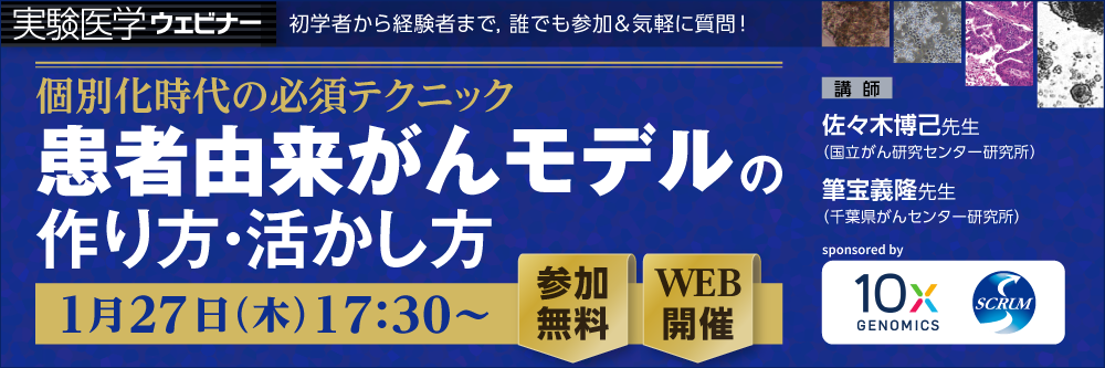 医学と生命科学の総合情報誌「実験医学」が主催する無料ウェビナーです.「誰でも参加」「気軽に質問」をコンセプトに,研究者の皆さまに役立つ情報をお届けします.