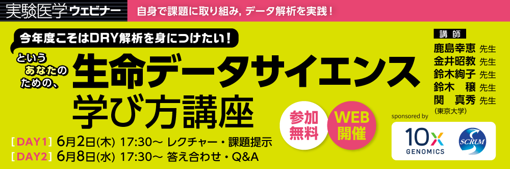 医学と生命科学の総合情報誌「実験医学」が主催する無料ウェビナーです.「誰でも参加」「気軽に質問」をコンセプトに,研究者の皆さまに役立つ情報をお届けします.