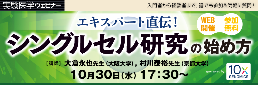 医学と生命科学の総合情報誌「実験医学」が主催する無料ウェビナーです.「誰でも参加」「気軽に質問」をコンセプトに,研究者の皆さまに役立つ情報をお届けします.