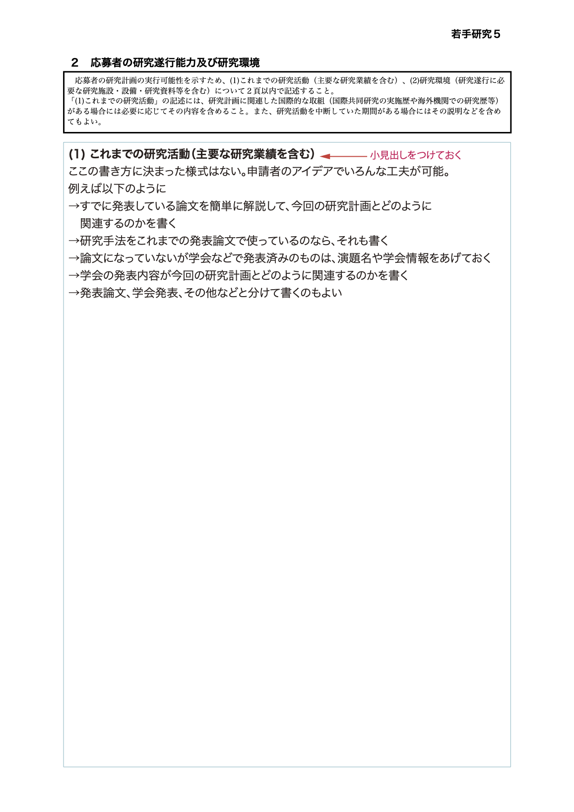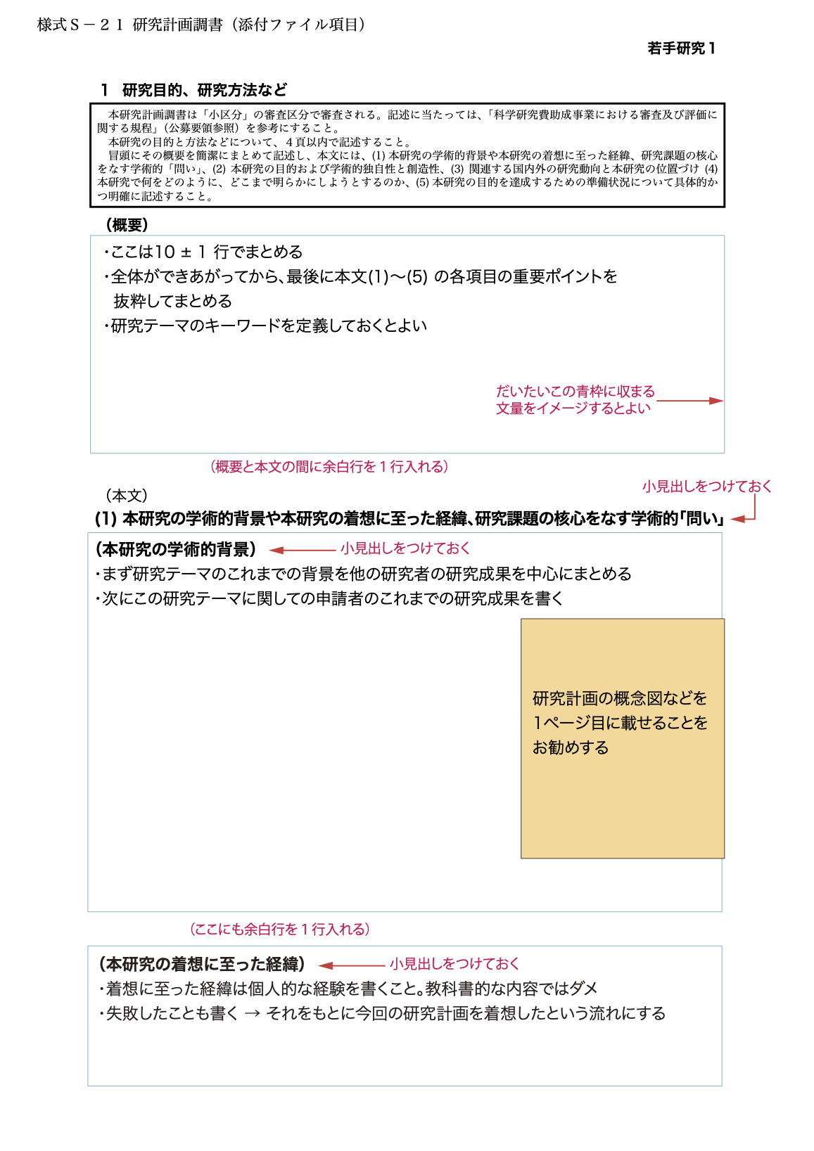 - 研究種目別『申請書の構成案』一覧