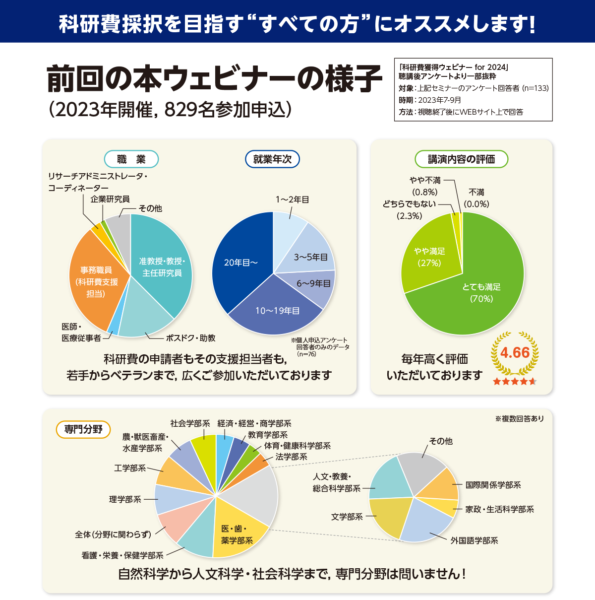 応募種目・分野,科研費申請や関連業務の経験有無に関わらず,どなたでもご参加ください