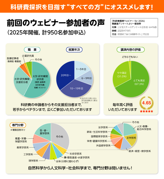応募種目・分野,科研費申請や関連業務の経験有無に関わらず,どなたでもご参加ください