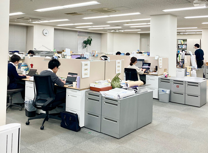 近年の状況変化への柔軟な対応も心がけています。社内では感染症対策をはじめとする安全管理を徹底し、時差通勤や在宅勤務も取り入れて社員が安心して業務に集中できる環境を整備しています。また、ひとりひとりのデジタル環境を充実し、オンライン会議やデジタルツールも使って社内外のコミュニケーションを深めています。