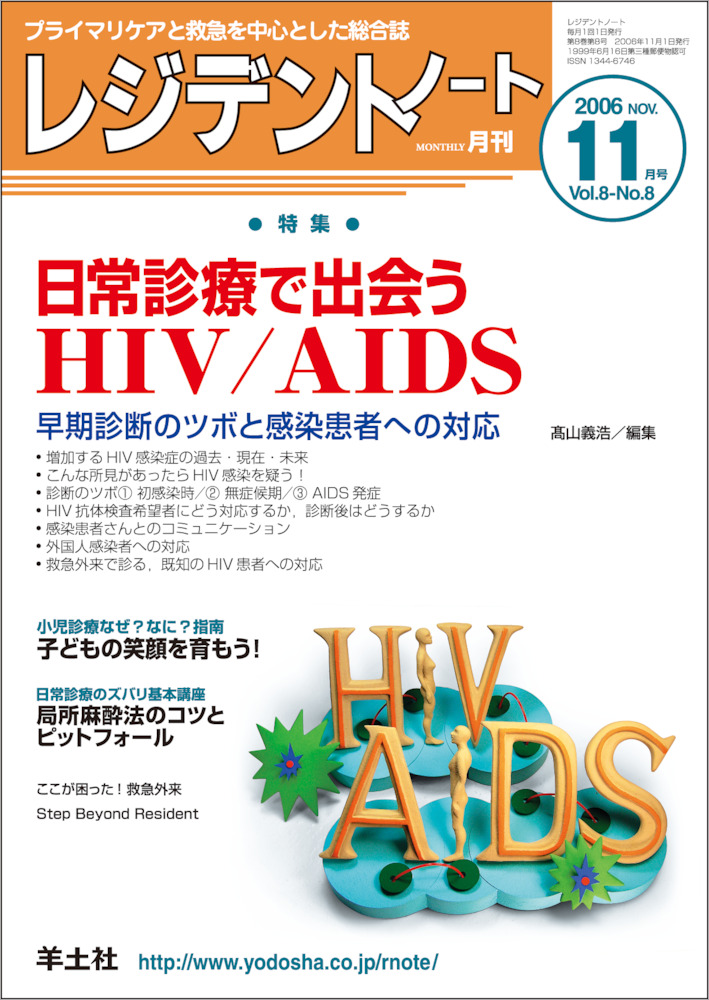 日常診療の場でも出会う可能性が急激に高まりつつあるHIV/AIDS.本特集では,AIDS発症前にHIV感染を見つけるための医療面接のポイントや,感染患者への具体的な対応法を解説します.