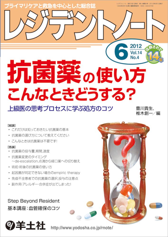 私たちは,臨床の現場で今日も悩む.発熱患者を診察して抗菌薬が必要だと判断しても,“数ある抗菌薬のなかで何をどれくらい投与しようか…”,“何とか選択した抗菌薬が実はもともと内服していた薬剤との併用が禁忌で使えない…”,“血液検査で腎機能障害が見つかり投与量の調整が必要…”,“そもそもこの患者に本当に抗菌薬は必要なのか…”と,悩みが尽きることはない.私たちのように相談できる同僚や上級医がいれば幸運だ.しかしすべての医師がチーム診療や屋根瓦方式で指導を受けられる環境におかれているわけではなく,マニュアル本や成書を傍らに置き,途方に暮れている医師も多いに違いない. 本特集では,臨床医,特に研修医が抗菌薬の選択,使用の際に遭遇する頻度の高い疑問や悩ましい問題に対して,臨床研修病院で“若手”より若干お年を召した中堅で,研修医とともに悩みながら診療にあたっている臨床医の方々を中心に執筆をお願いした. 「これだけは知っておきたい抗菌薬の基本」の稿では,抗菌薬を学び,処方する際にどこから手をつけたらよいのか頭を抱える研修医に向けて,最低限押さえるべきポイントを提示する. 「抗菌薬の選び方について教えてください」の稿では,沖縄県立中部病院で実践されている抗菌薬の基本ステップが,リアルな症例呈示に沿って具体的に紹介されている. 「こんなときは抗菌薬は不要です!」の稿では,診療でよく遭遇する市中感染症において,抗菌薬が必要な場合とそうでない場合に関して最新のエビデンスをもとに論じられている. (中略) 以上の9稿は,いずれも労作揃いである.本誌を手に取られた読者が,診療で遭遇する抗菌薬についての疑問や悩みが少しでも払拭されることを編者として心から祈念している.