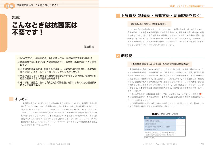 「こんなときは抗菌薬は不要です!」の稿では,診療でよく遭遇する市中感染症において,抗菌薬が必要な場合とそうでない場合に関して最新のエビデンスをもとに論じられている.