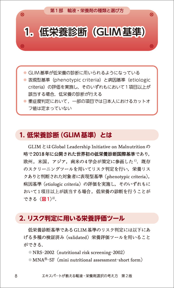 栄養療法で用いる輸液や栄養剤に焦点を当て,その選び方・使い方がよくわかる.病態ごとの処方例を多数掲載し,付録には輸液・経腸栄養剤の成分の一覧表を収載.今回の改訂では各種製剤の情報をアップデートし,「日本人の食事摂取基準(2025年版)」にも対応.さらに,GLIM基準や摂食嚥下障害など新項目を追加しました.持ち運びに便利なポケットサイズで,NST(栄養サポートチーム)の医療者はじめ,栄養管理に携わるメディカルスタッフ必携の一冊です.