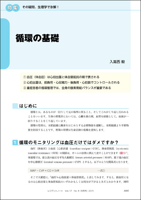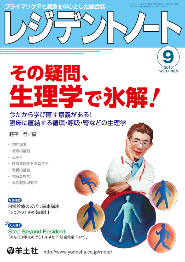 基礎系科目はどの科目も臨床医にとって重要ですが,そのなかでも特に生理学は人間の体の正常な状態を理解するうえで必要不可欠です.本特集では「臨床現場で役立つ生理学」ということで,循環の基礎と循環不全,呼吸不全の病態について,また腎臓や血液凝固・線溶系,糖代謝系,電解質異常について各分野のエキスパートに解説していただいています.臨床からみて必要な生理学の知識というものを整理できることをめざしています.誌面の都合で神経系など今回触れなかった分野もありますが,神経系はむしろ循環にも呼吸にも関与しており,それらの一部として各稿に含まれてくるものと考えています.神経系に特化したような部分に関しては,各自勉強する時間を設けていただければと考えています.