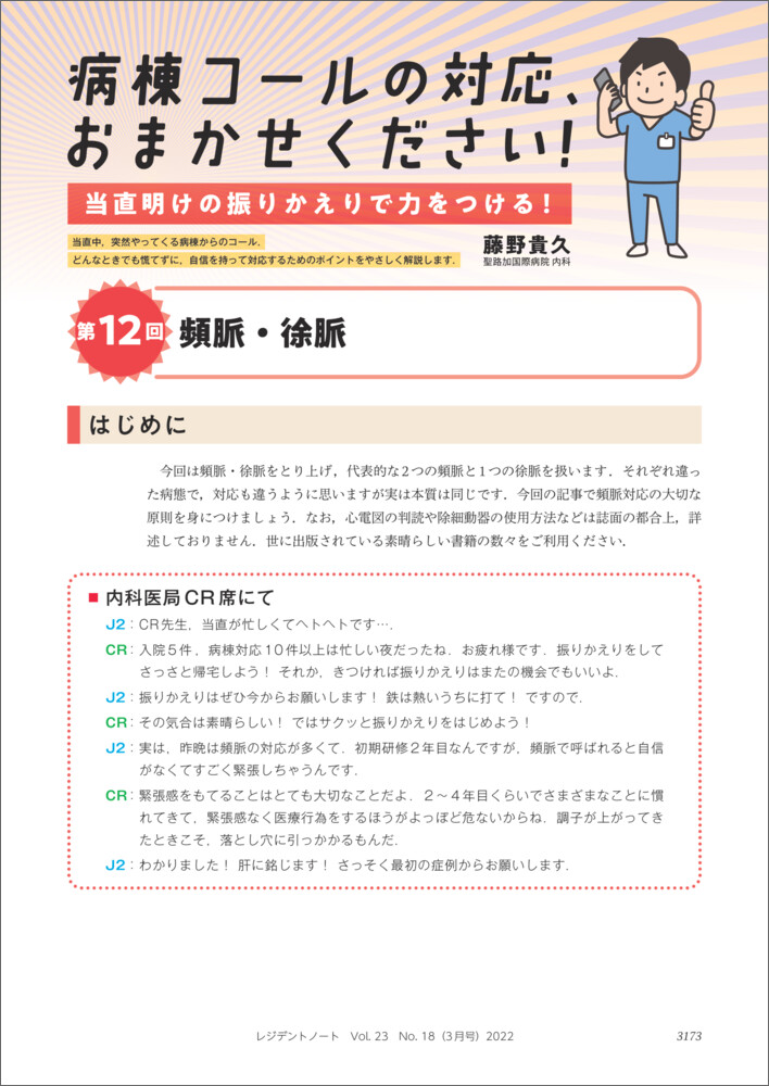 皆さんこんにちは.早いもので,もう年度末ですね.卒後1年目の皆さん,この1年間の研修の成果はいかがでしょうか? 2年目の皆さんは,来年度からは“初期”研修医ではなくなりますが,準備は万端でしょうか? 先日,研修医と話をしていたら,「焦らせないでください」と苦笑いされましたが,彼の目が笑っていなかったのを私は見逃しませんでした(笑).しかしながら今は指導医と呼ばれる多くの先輩たちも「こ,このまま研修修了でホントに大丈夫なんだろうか…」と当時少し心配になっていたことはよく耳にします.少なくとも私はそうでした.…