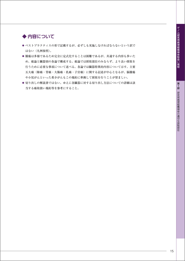 日本病理学会の編集により、がんをはじめとするゲノム医療のための病理組織検体の採取・保管・標本作製の具体的な方法を実証データに基づき解説。保険適用となるゲノム医療に携わる医療者・研究者必携の実用書。
