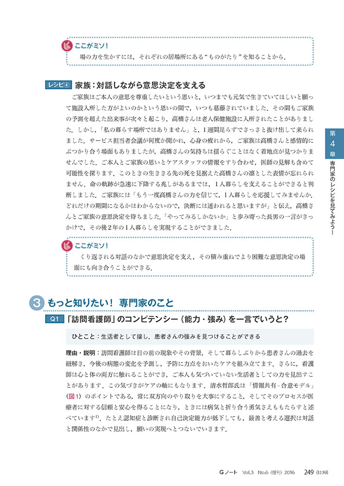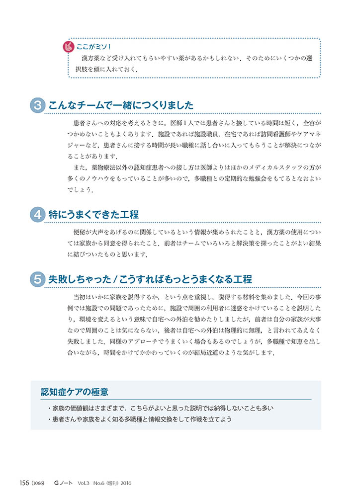 認知症について,日頃から3つのことを考えている.1つは,認知症の突き詰めた領域は間違いなく疾病なのであるが,対応としての医療は一部でしかなく,むしろ,医療からいかに距離をおき,社会的課題とするかが大切であること.1つは,認知症を支える社会の構造こそ喫緊の課題であること.例えば,見知らぬ大都会の隣人や,超高齢社会となった日本で誰が担い手となるのかといったことである.1つは,認知症の方のそれぞれの疾病のありようよりも,それぞれが歩んでこられた人生,コンテクストが重要であること,この3つである.