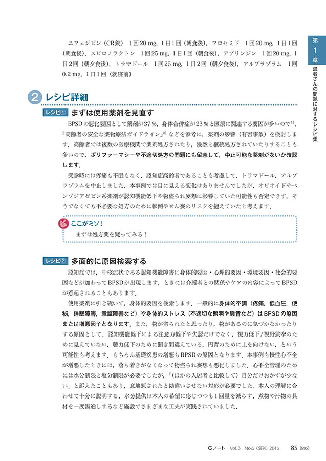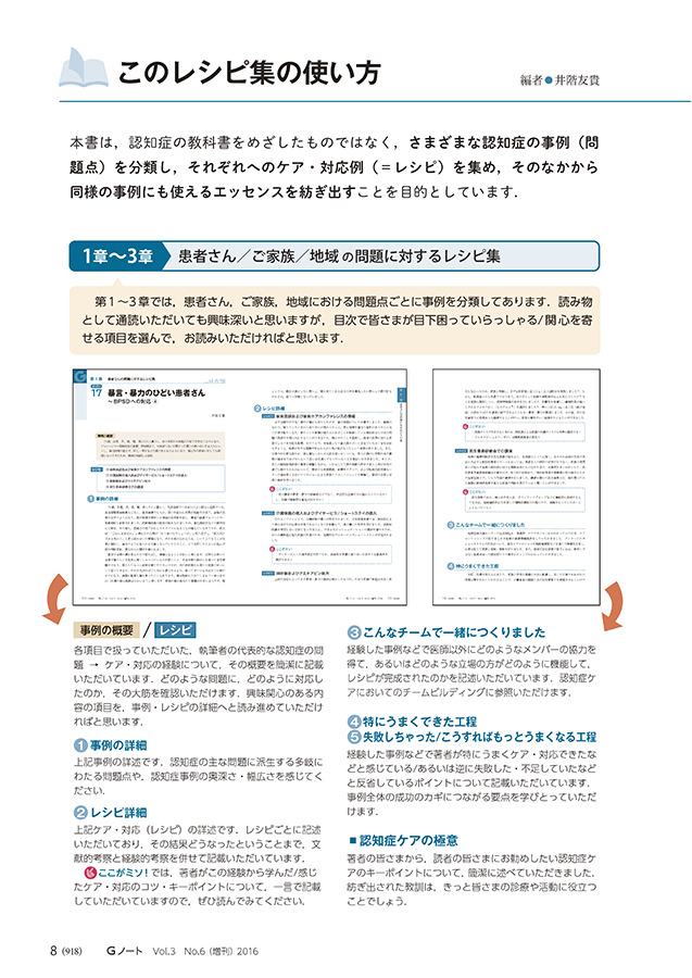 BPSDが治まらない,家族が介護でダウン寸前,多職種連携が進まない…など,認知症にまつわる種々の問題への対応を多彩な事例で解説し,要点を“レシピ”として紹介.「困った!」に効くヒントが満載の事例集!