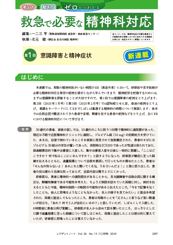 研修医の皆さん,毎日の診療お疲れ様です.本特集「スッキリ解決! 便秘・下痢診療の悩みどころ」を通して,皆さんの日々の研修がさらに明るいものとなることを願っております.… 三原 弘(札幌医科大学医療人育成センター/医学部 総合診療医学講座) 続きを読む