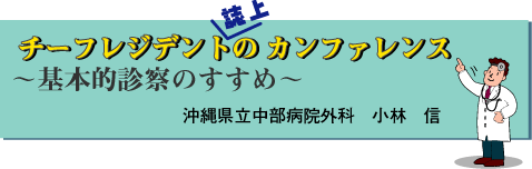 沖縄県立中部病院外科研修医の小林信です.途上国や被災地などで働く医師になりたい,と思い,最新の機械に頼らず自分の基本的診察能力で診断,治療できるようにと中部病院に来ました.そのなかで病歴聴取,身体所見,単純X線など最低限の検査だけで多くの診断にたどり着けること,そして誤診や見落としの多くはこれら基本的診察が不十分であるために起こっていることに気づきました.今回の誌上カンファレンスでは,病歴聴取,身体所見,単純X線などに焦点を当て,これらの重要性,インターン,学生が陥りやすいpitfall,それから中部病院のチーフレジデントとして普段考えていることや教えていることを書いていきたいと思います.誌上カンファレンスの内容は,日常診療に直結したものばかりです.普段の何気ない診察に新しい目で取り組めるような内容にしたいと思います.