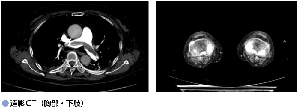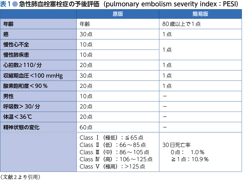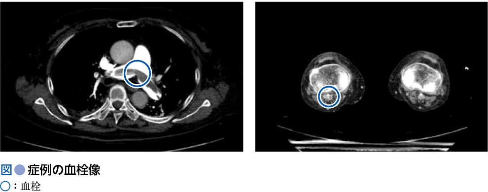 日中起立時の突然の呼吸困難:初診時 初診時 68歳女性.肺癌術後で経過観察をしている.多発神経炎に対してステロイドを内服している.日中は坐位で過ごすことが多い.日中起立時に突然の呼吸困難が出現し,救急車で来院した. 来院時,意識清明,血圧96/71 mmHg,脈拍98回/分,呼吸回数26回/分,SpO2 95%(O2 10 L/分リザーバーマスク)であった.来院時採血では,トロポニンT 0.168 pg/mL,FDP 29.3μg/mL,Dダイマー12.21μg/mL,eGFR 44 mL/分/1.73 m2であった.心エコーでは左室のD-shape様変形を認め,右室の拡大を認めた.造影CT検査を施行したところ以下の通りであった. ※クリック/タップで拡大します 本症例の診断は何か.2つ選べ. ⓐ肺血栓塞栓症 ⓑ急性心不全 ⓒ急性心筋梗塞 ⓓ深部静脈血栓症 本症例に対する初期治療薬として,適切でないものはどれか. ⓐアスピリン ⓑ直接作用型経口抗凝固薬(DOAC) ⓒ未分画ヘパリンナトリウム ⓓワルファリン A1 ⓐ肺血栓塞栓症,ⓓ深部静脈血栓症A2 ⓐアスピリン 重症度評価に基づく治療方針の選択 造影CT上肺動脈主幹部に血栓像があり,右膝窩静脈-大腿静脈に血栓像を認め,肺血栓塞栓症および深部静脈血栓症と診断される(図). 血行動態は保たれているものの,簡易版PESI≧1(表1),右室機能不全と心筋逸脱酵素の上昇を認め,重症度クラスは中[高]リスク(表2)に該当する. 中[高]リスクの症例に対しては,抗凝固療法を第一選択とするが,経過中に血行動態が不安定化する可能性に注意し慎重なモニタリングを要する.血行動態の悪化時は血栓溶解療法を考慮する. 現在のガイドライン1)上,血栓溶解療法の適応は,ショックや低血圧が遷延した重症例のみである.モンテプラーゼ(点滴静注:13,750~27,500単位 /kg,2分間で静注)が使用可能である. ワルファリンを投与する場合は,投与開始から治療域にコントロールされるまで未分画ヘパリンナトリウムを併用する. DOACは即効性があり(抗凝固作用の発現まで1〜4時間程度),ショックのない症例では通常DOACが第一選択として使用されることが多い. 経過観察中に血栓溶解療法を使用する可能性が高いと予想される症例では,半減期が1時間と短い未分画ヘパリンナトリウムが使用しやすい. 文 献 日本循環器学会,他:肺血栓塞栓症および深部静脈血栓症の診断,治療,予防に関するガイドライン(2017年改訂版)(2021年11月閲覧) Konstantinides SV, et al:2014 ESC guidelines on the diagnosis and management of acute pulmonary embolism. Eur Heart J, 35:3033-3069, 3069a, 2014 (2022/06/03公開) 戻る この"ドリル"の掲載書をご紹介します 循環器薬ドリル 薬剤選択と投与後のフォローも身につく症例問題集 池田隆徳/監,阿古潤哉/編 定価:4,950円(本体4,500円+税) 在庫:あり 月刊レジデントノート 最新号 次号案内 バックナンバー 連載一覧 定期購読案内 定期購読WEB版サービス 定期購読申込状況 レジデントノート増刊 最新号 次号案内 バックナンバー 定期購読案内 residentnote @Yodosha_RN その他の羊土社のページ ウェブGノート 実験医学online 教科書・サブテキスト 広告出稿をお考えの方へ 広告出稿の案内