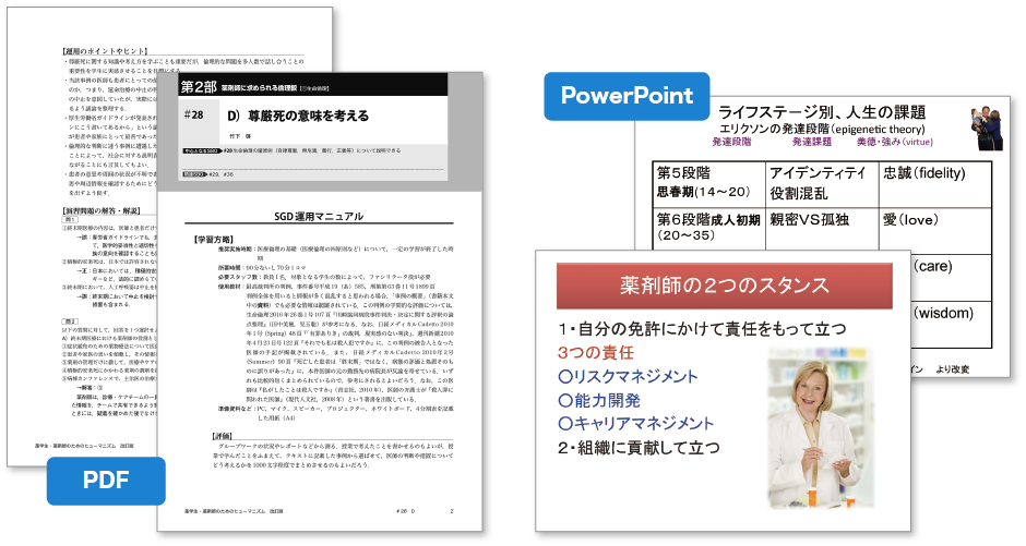 その他、演習用のワークシートや講義進め方資料など講義展開のサポートとして、お役立ていただける教材をご用意している教科書もございます。