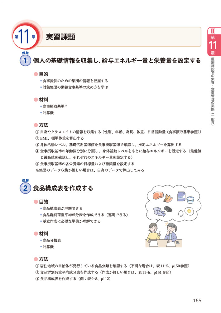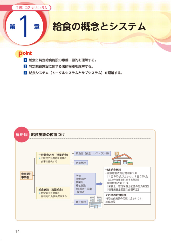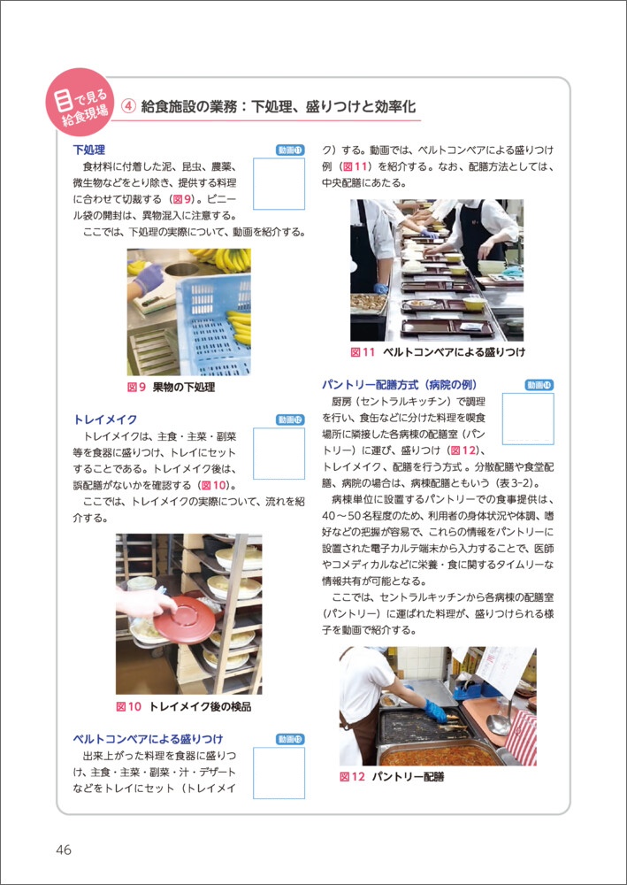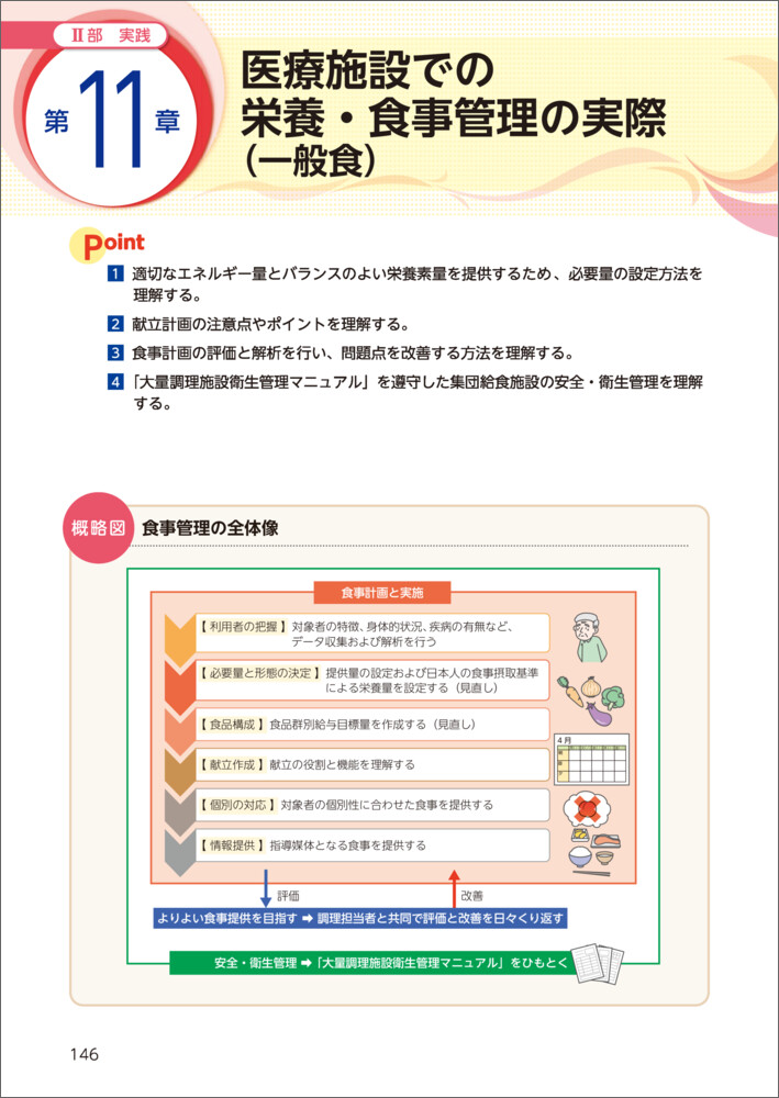 特定多数へ美味しくバランスのよい食事を安全に提供するために必要な知識と,給食を適切に運営するための経営管理について総合的に学びます.特定給食施設を想定した大量調理という特性のなかで,管理栄養士が考えるべきこと,行うべきことを図表を交えてわかりやすく解説しています.実際の給食現場をイメージできるweb動画つき!