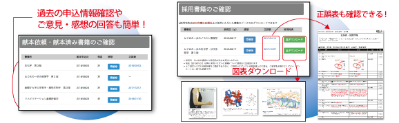 会員登録をいただくと,献本申込みの際に,毎回送付先などを入力する手間が省けます!また,マイページ内でこれまでの献本や採用の履歴などもご覧いただけます.