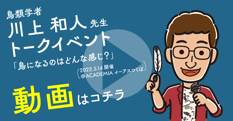 『鳥になるのはどんな感じ?』の発行記念として、5/14(土)14:00からアカデミア イーアスつくば店( @kbc_iiastsukuba )さまにて川上和人先生のトークイベント開催いたします!