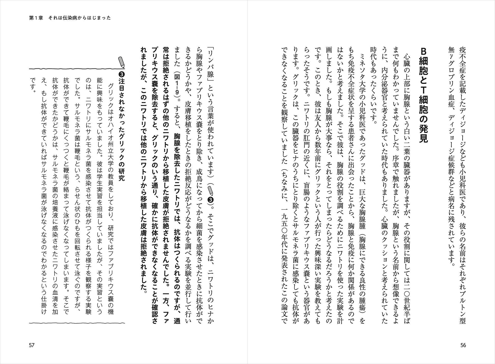 偉大な科学者たちの試行錯誤や小話を楽しみながら、免疫学の知識が身につきます!