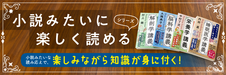 『小説みたいに楽しく読める』シリーズとして、生命科学、免疫学、解剖学、脳科学、栄養学、睡眠医学の6テーマで書籍を発行しています。よろしければ上記バナーからシリーズページもご覧ください!