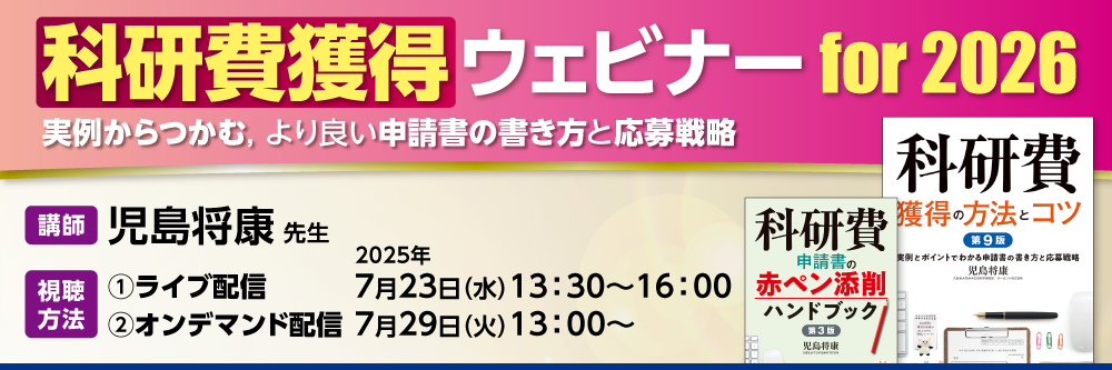 いよいよ2025年7月14日より、科研費の公募が始まりました! すでに準備を進めている方も多いのではないでしょうか。そんなあなたに心強い味方となる一冊、『科研費獲得の方法とコツ 第9版』が2025年6月30日発行となり、早くも多くの方に好評を博しています。