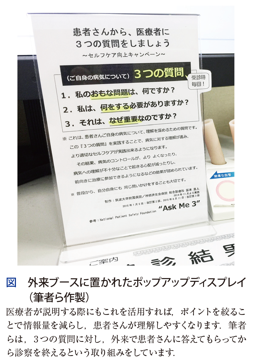 重要なことは,“患者さんから”質問をしてもらうこと.このAsk Me 3の取り組みは,「質問をしてもよい,質問をしても恥ずかしくない」というメッセージを伝えるのにも役立ちます.