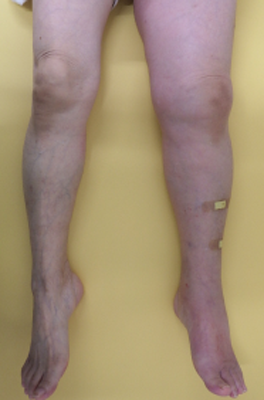 70歳代女性.3週間ほど前からの左下腿の浮腫を主訴に来院した.既往歴に糖尿病と変形性膝関節症があり,シタグリプチン,ピオグリタゾン,ロキソプロフェンを内服している.