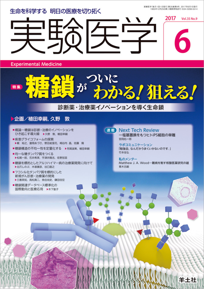 - 【本書名】実験医学:糖鎖がついにわかる!狙える!〜診断薬・治療薬イノベーションを導く生命鎖