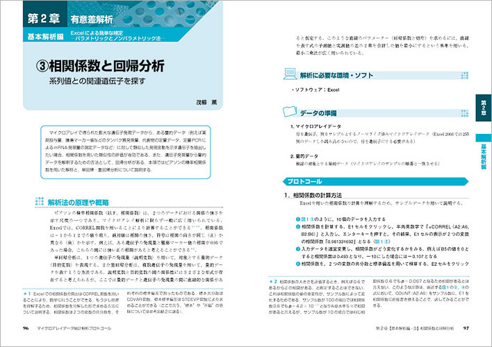 マイクロアレイのデータに特化した統計解析の実践マニュアル!ExcelやRなどの汎用ソフトによる解析画面を挙げながら,実際の解析例のプロトコールをわかりやすく解説しているので,統計学が苦手でも大丈夫!