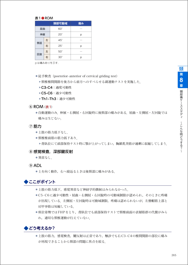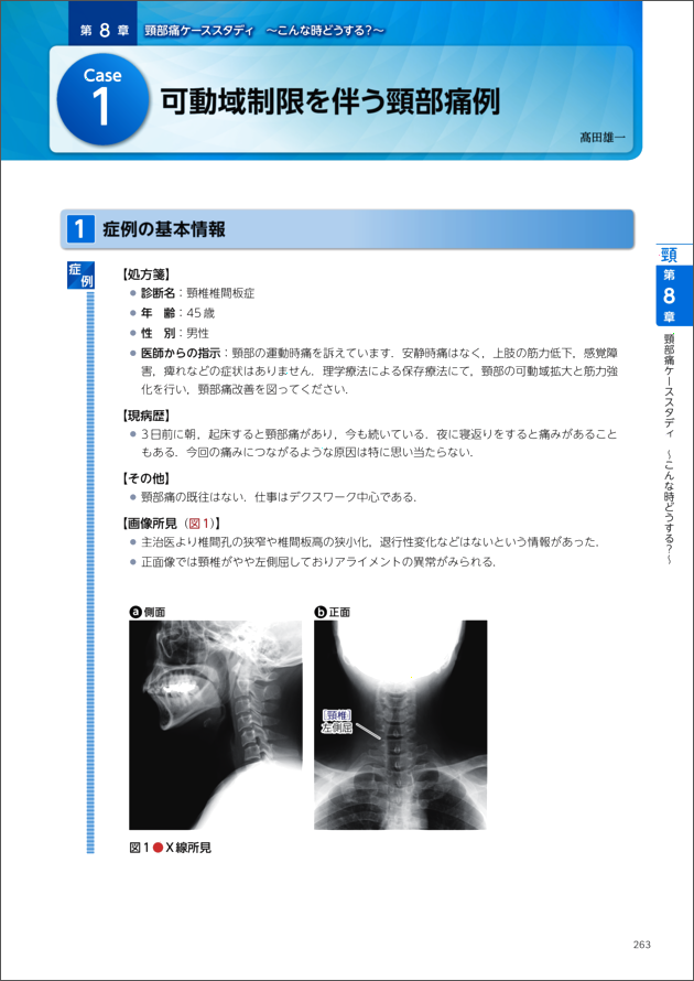 『第8章 頸部痛ケーススタディ 〜こんな時どうする?〜 case1.可動域制限を伴う頸部痛例』より抜粋