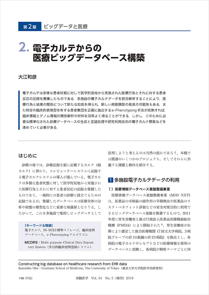 2.電子カルテからの医療ビッグデータベース構築【大江和彦】