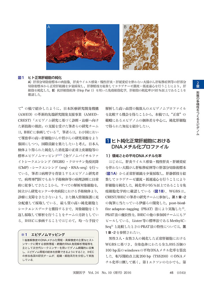 - 【本書名】実験医学増刊:エピゲノム研究 修飾の全体像の理解から先制・個別化医療へ〜解析手法の標準化、細胞間・個人間の多様性の解明、疾患エピゲノムを標的とした診断・創薬