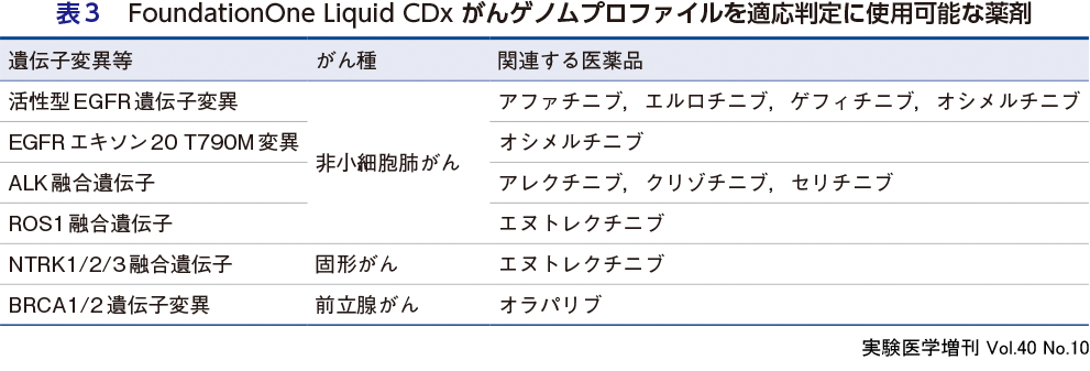 近年におけるがん分子標的治療薬の急速な発展と普及に伴い,コンパニオン診断の重要性も増している.実際,本邦において2021年2月時点で承認されているがん分子標的治療薬は89種類におよび,今後もさらに多くの治療薬が開発され,臨床に投入されていくことは想像に難くない.なおコンパニオン診断薬とは,「バイオマーカーの解析結果に基づき,特定の医薬品の有効性及び安全性が期待される患者を特定するために使用される体外診断用医薬品又は医療機器のうち,当該医薬品の使用にあたり不可欠な製品」であると定義されている.2022年3月時点でコンパニオン診断薬等を用いる必要がある医薬品としては35種が指定されており(PMDA「医薬品の適応判定を目的として承認された体外診断用医薬品又は医療機器の情報」より),37種の体外診断用医薬品,機器が承認されている.このうち,12医薬品に対するコンパニオン診断を目的として5種のリキッドバイオプシー診断薬が使用されている(表1).