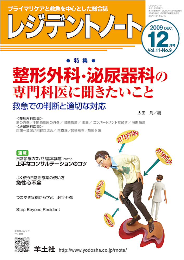 • 【本書名】レジデントノート:整形外科・泌尿器科の専門科医に聞きたいこと〜救急での判断と適切な対応