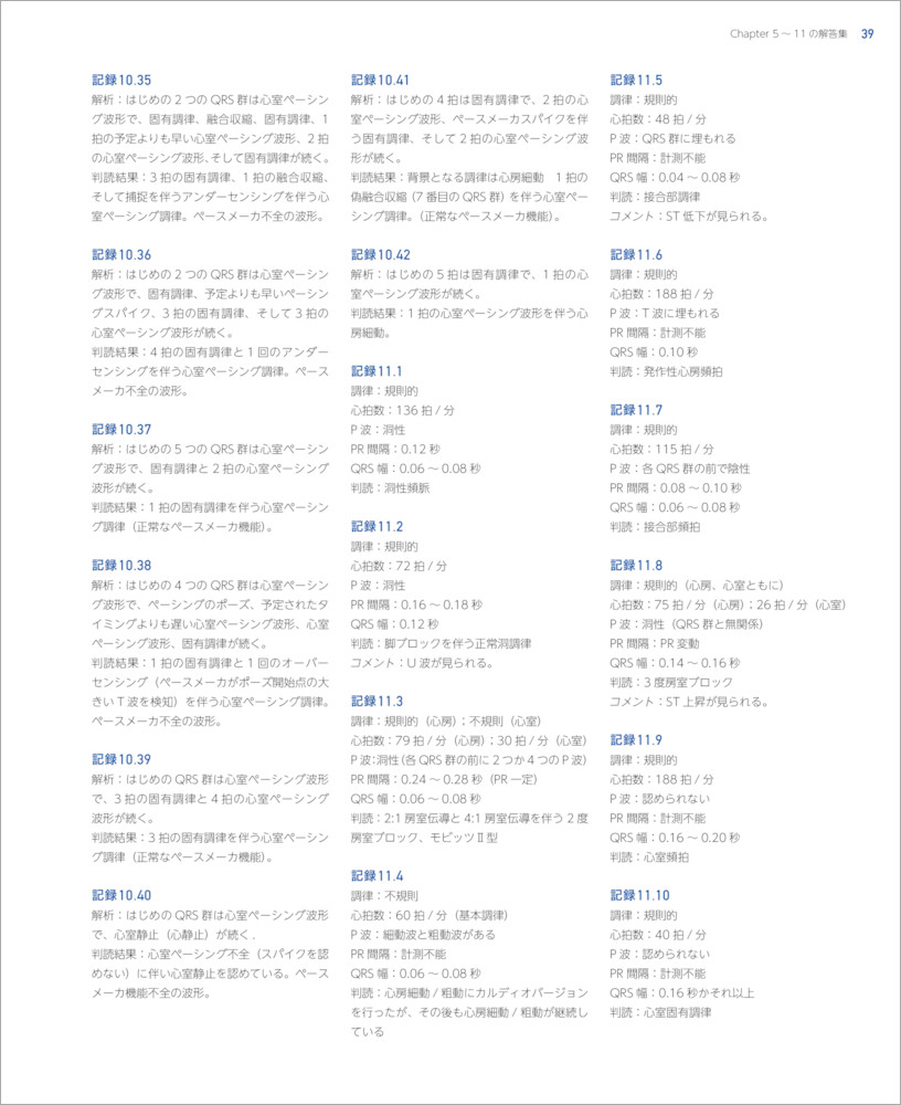 豊富に心電図波形が掲載されており、練習には非常によいと思います。学生や研修医の講義に使用させていただきます