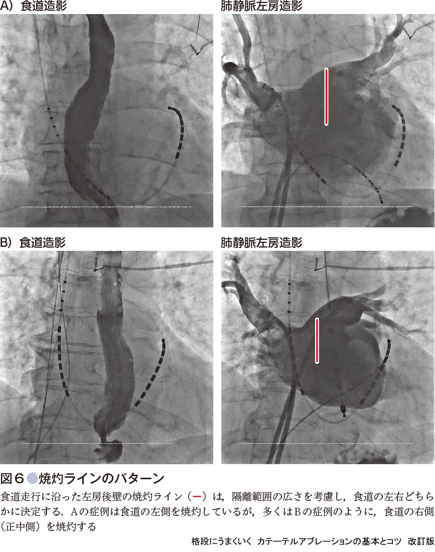 肺静脈隔離時に食道の走行に沿って,上下に左房後壁を焼灼する際は,食道上の左房後壁を,食道温度制限に引っかかりながら不十分に焼灼するよりは,たとえ心筋壁が厚くなっても,食道を避け,温度制限に引っかからないようにしながら左房後壁を十分に焼灼した方が,結果的に,広範囲で効率的な肺静脈隔離が可能となる(図6).
