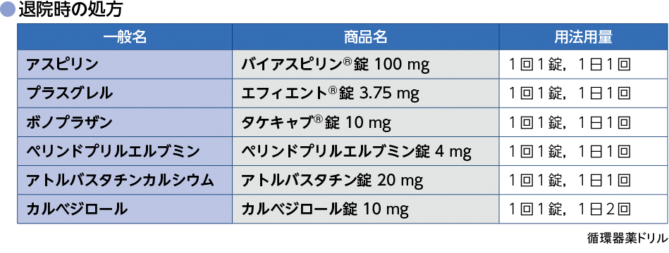 心臓リハビリテーションを行い,入院から3週間後に退院した.退院時の心不全症状はなくNYHA分類Ⅰ度であった.退院時の身長172.6 cm,体重81.5 kg.DAPTとしてアスピリンとプラスグレルを投与した.