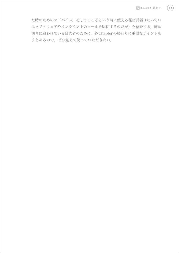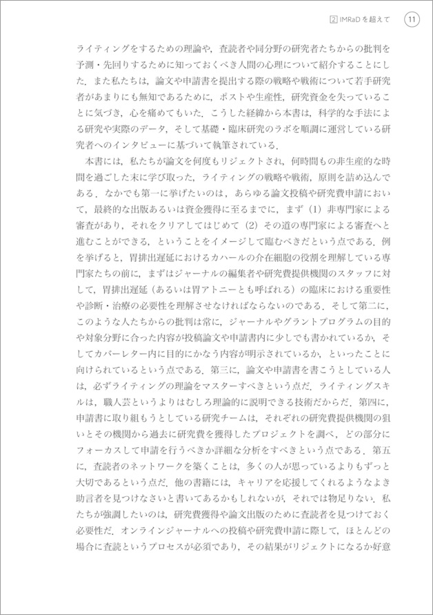 「自著の参考にもできそうだな」と本書を読んで思った.本書の中心となるのは,論文や申請書を読む側の心理的・神経学的な反応をよく洞察して書くためのテクニックだ.