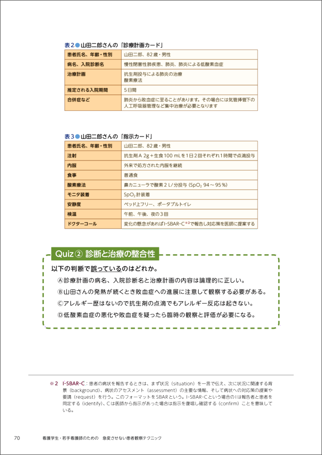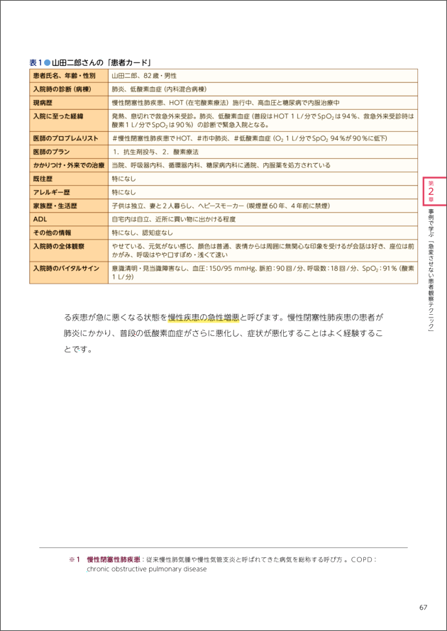 ここは◯◯市立総合病院(300床の急性期病院)の呼吸器内科病棟です。あなたは日勤の看護師で昨日の夜間救急外来から緊急入院となった山田二郎さんを受けもちます。