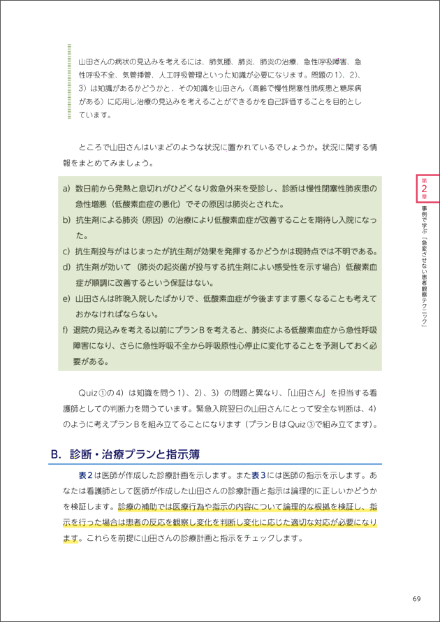 山田さんのところに行く前に、1まず頭を整えます(山田さんの情報から病状や訪室したときに観察することを確認する)。次に2患者のところに行って山田さんの全体の印象や療養環境を観察し整えます。そして3患者に接して初期評価を行います。…