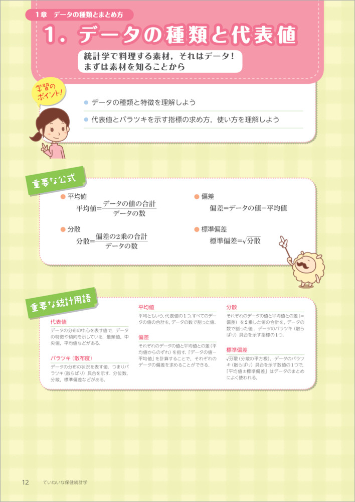 数学が苦手でも大丈夫!ムズカシイ数式なしで基本的な考え方を一つひとつ解説しているから,平均も標準偏差も検定もとことん納得!練習問題には看護師・保健師国家試験の過去問つき.国試対策はこれでバッチリ!
