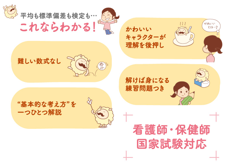 看護師・保健師国試対応!難しい数式なしで基本的な考え方をていねいに解説しているから,平均も標準偏差も検定もこれで納得!はじめの一冊に最適です.第2版では統計データを更新.国試過去問入りの練習問題付き.