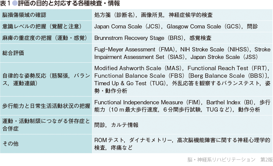 - 表1に評価の目的と対応する各種検査・情報をまとめた.