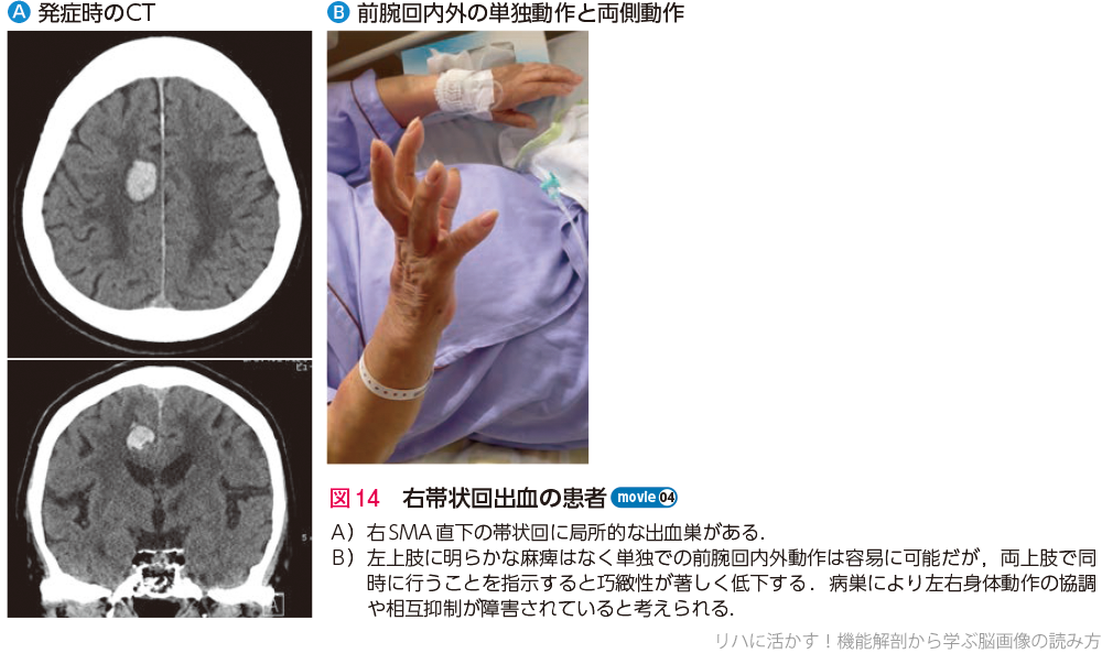 なおSMAは大脳縦裂を境に左右で隣り合っています.つまり両足での歩行や両手で料理を載せたお盆を運ぶなど,左右身体動作の協調や相互抑制にも強くかかわっています(図14).