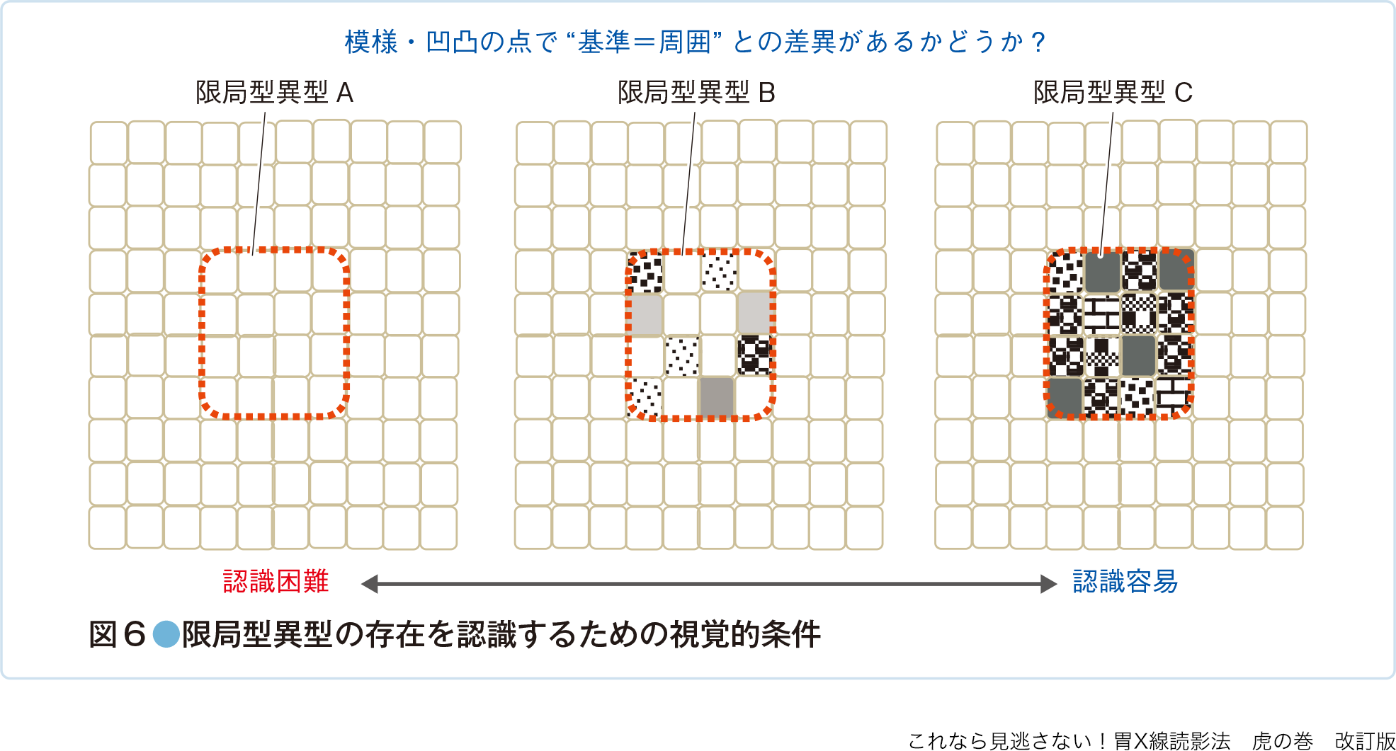 その条件とは特に限局型異型の場合,模様・凹凸の点で周囲との差異があることです(図6).
