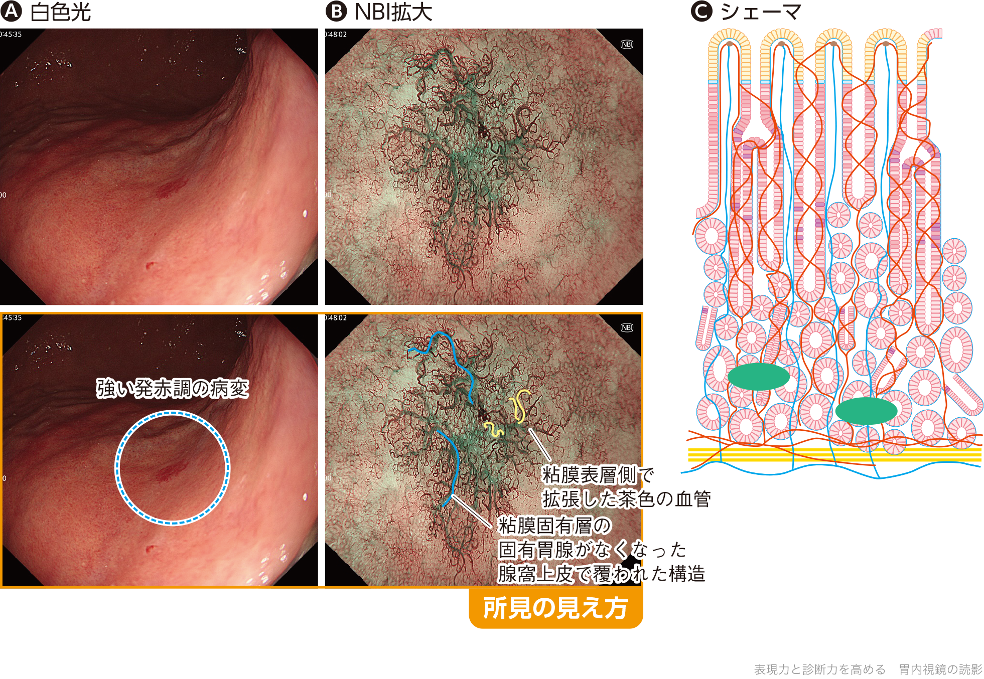 こうしたことをふまえ,白色光観察・色素内視鏡観察での癌の診断は①well-demarcated border,②irregularity in color/surface patternの2つを基準にして考える,と提唱されていますし1),以前よりの教科書などでもそのように記載されていることと思われます.